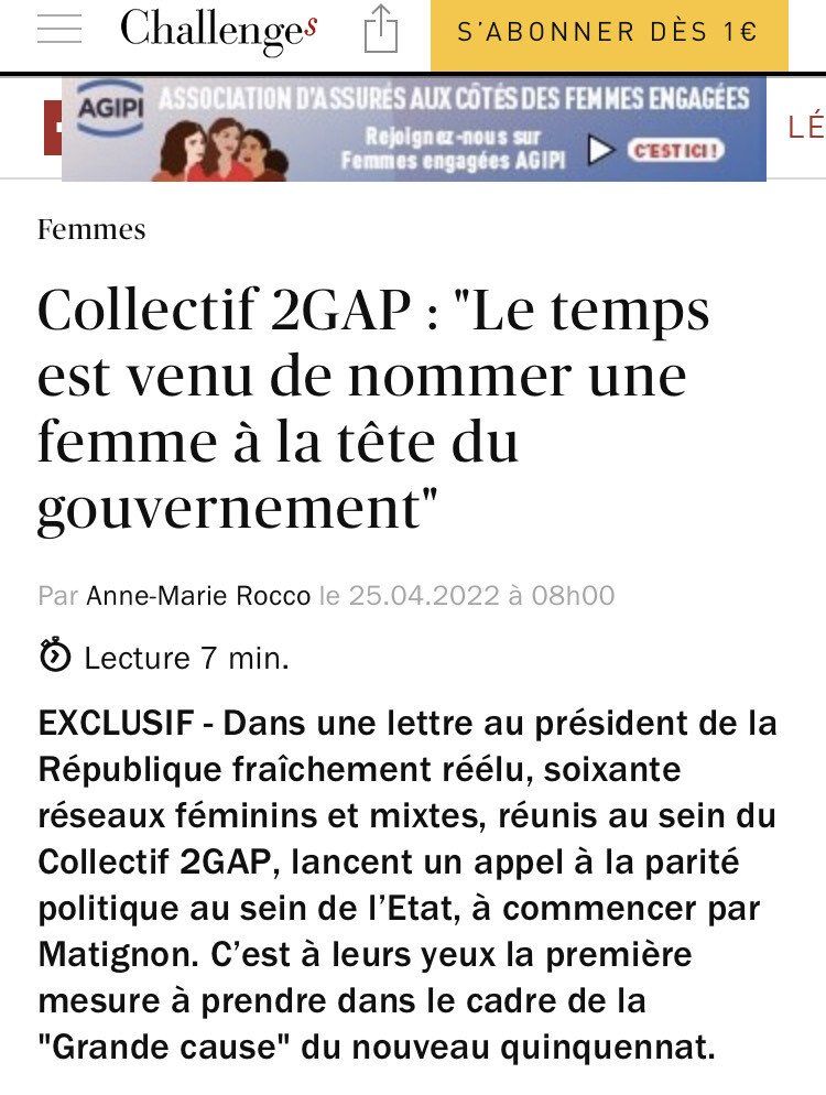 A l'occasion de sa réelection, 2GAP a adressé une lettre ouverte à Emmanuel Macron. Cette lettre, publiée dans Challenges le lundi 25 avril, appelle à la parité au sein du nouveau gouvernement.