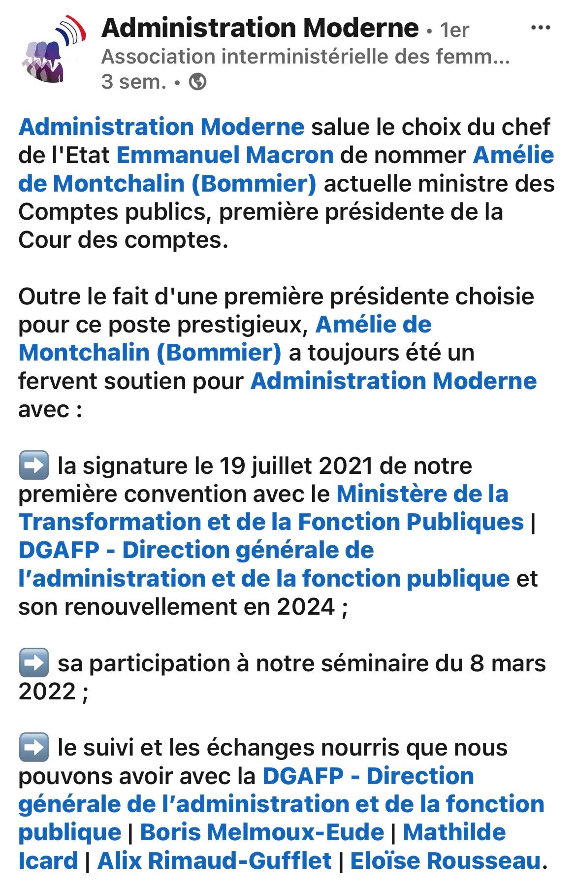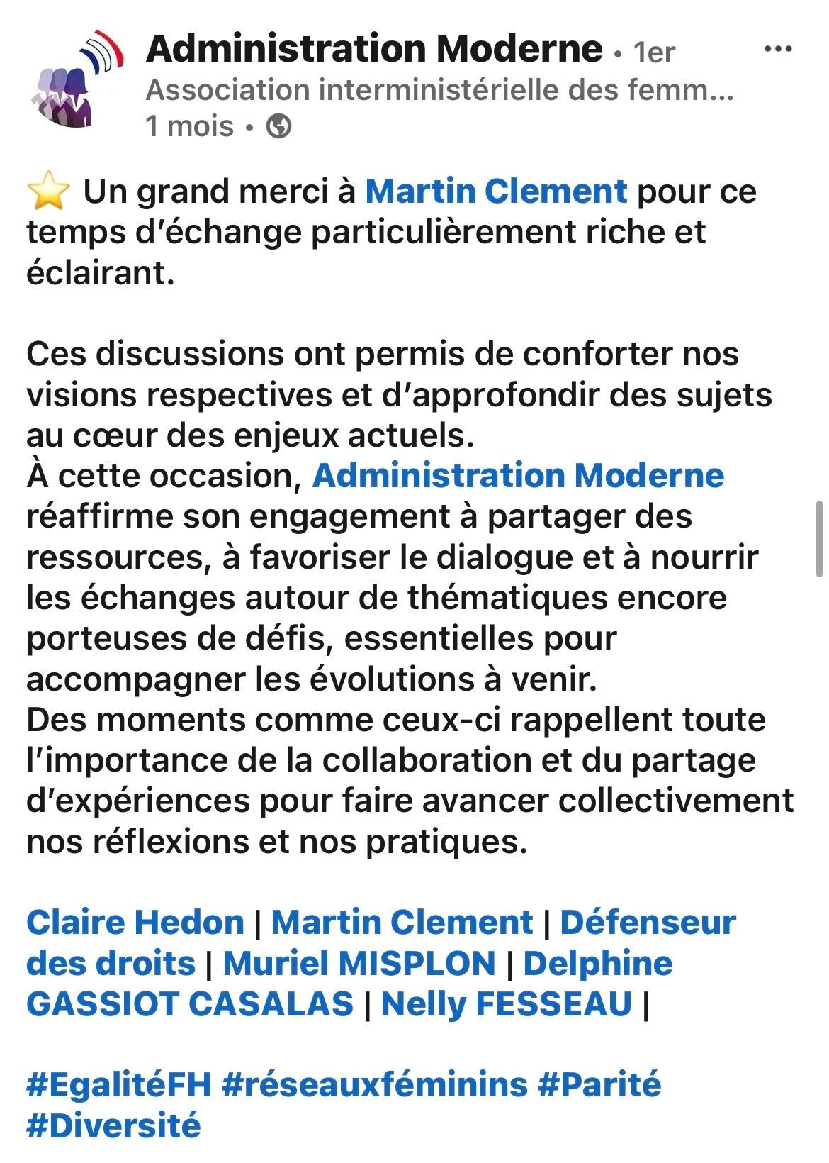 de l’ensemble des réseaux professionnels féminins de la fonction publique.